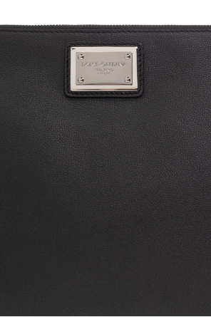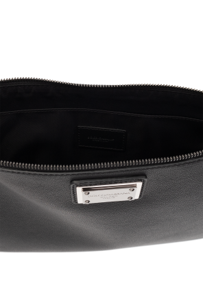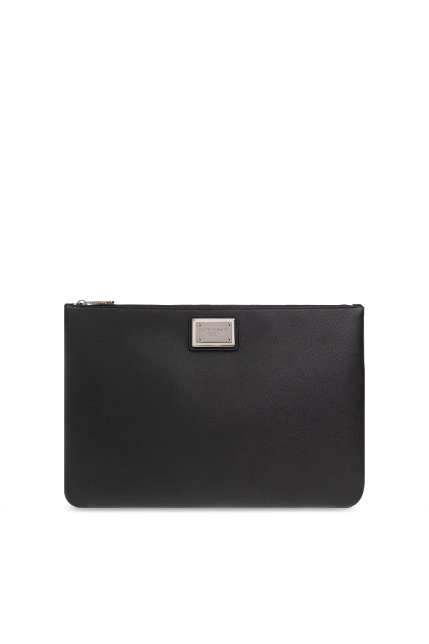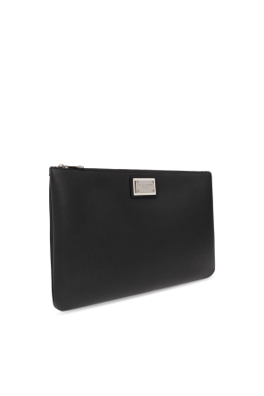 Black clutch from Dolce & Gabbana. One side is made from calf leather and features a zip fastening, metal logo-embossed insert in silver-tone, black metal hardware and one internal compartment with one slip pocket.