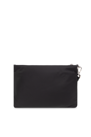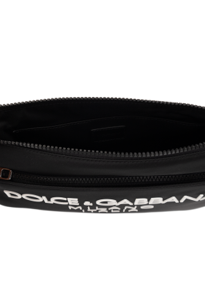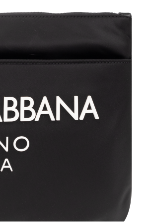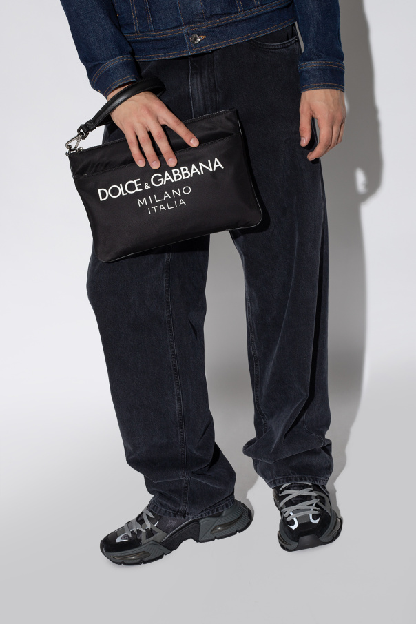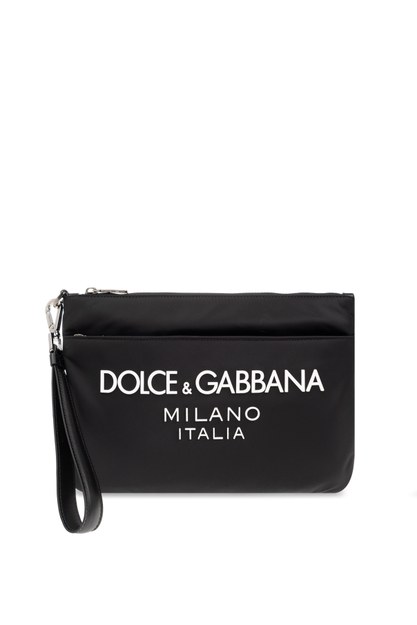 Black handbag from Dolce & Gabbana. Crafted from fabric with calf leather trims, this design features a zip fastening, white rubber logo, zipped front pocket, detachable wrist strap, silver-tone metal hardware and one internal compartment with one slip pocket.