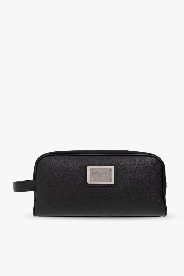 Black wash bag from Dolce & Gabbana. Emblazoned with a logo application, this design features a zip fastening, a half-round handle and one internal compartment with a zip pocket.