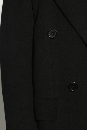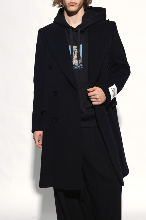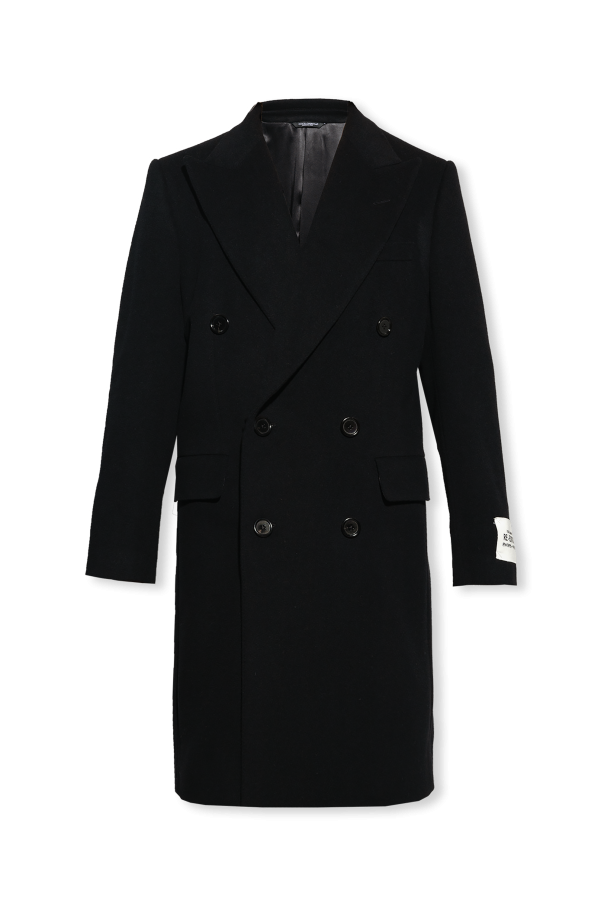 Black coat from Dolce & Gabbana, the ‘RE-EDITION F/W 1995’ collection. Made from a wool and cashmere blend with a double-breasted silhouette, this style features button fastenings, peak lapels, one welt pocket, two flapped pockets and long sleeves.