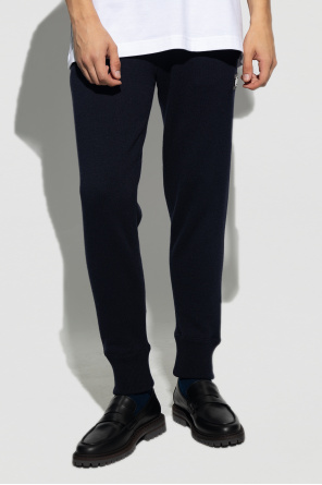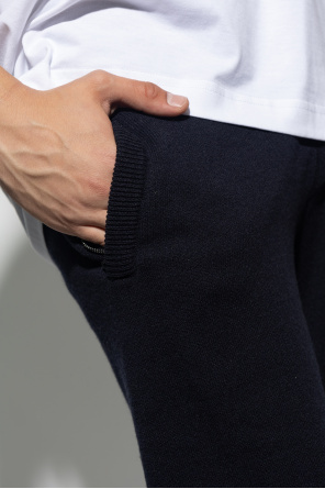 Navy trousers from Dolce & Gabbana. Made of wool, this pair features an elastic drawstring waistband, logo-engraved patch, three zip pockets and ribbed cuffs.
