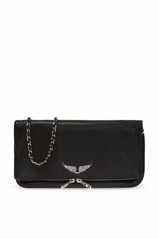 Zadig & Voltaire的黑色Rock单肩包,采用纹理牛皮制成,磁扣开合,饰以白色饰顶镶嵌的翅膀贴饰。两个拉链外袋。可拆卸链式和皮质双肩带。黑色内衬。内有一个主要分层。银色金属配件。