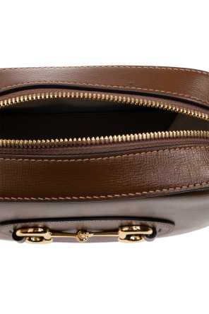 Gucci的棕色1955 Horsebit Small单肩包,采用小牛皮制成。拉链开合。正面饰有马衔金属饰片。背面设有一个插袋。可调肩带。内部配有一个主隔层和一个插袋。金色金属配件。