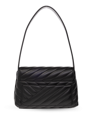Black ‘Lop’ quilted shoulder bag from Dolce & Gabbana. Made of lamb leather, this design secures with a branded twist fastener and features a half-round shoulder strap, one back slip pocket, gold-tone metal hardware and one internal compartment with one zip pocket and one card slot.
