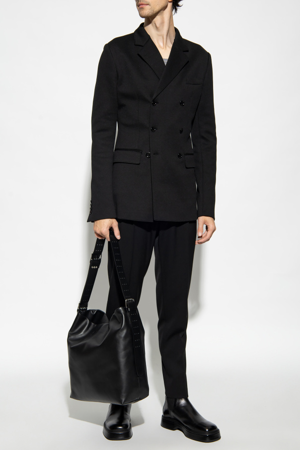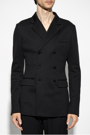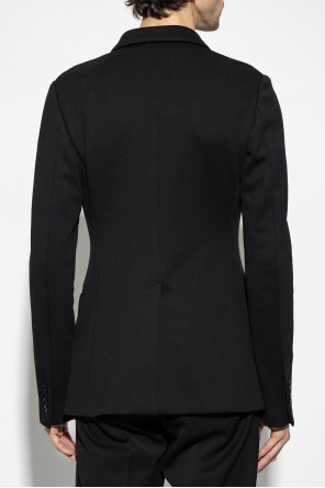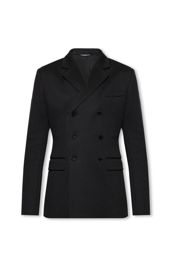 Black coat from Dolce & Gabbana. Crafted with a double-breasted silhouette, this style features a single back vent, button fastenings, notch lapels, one welt pocket, two flapped pockets, and long sleeves with button cuffs.
