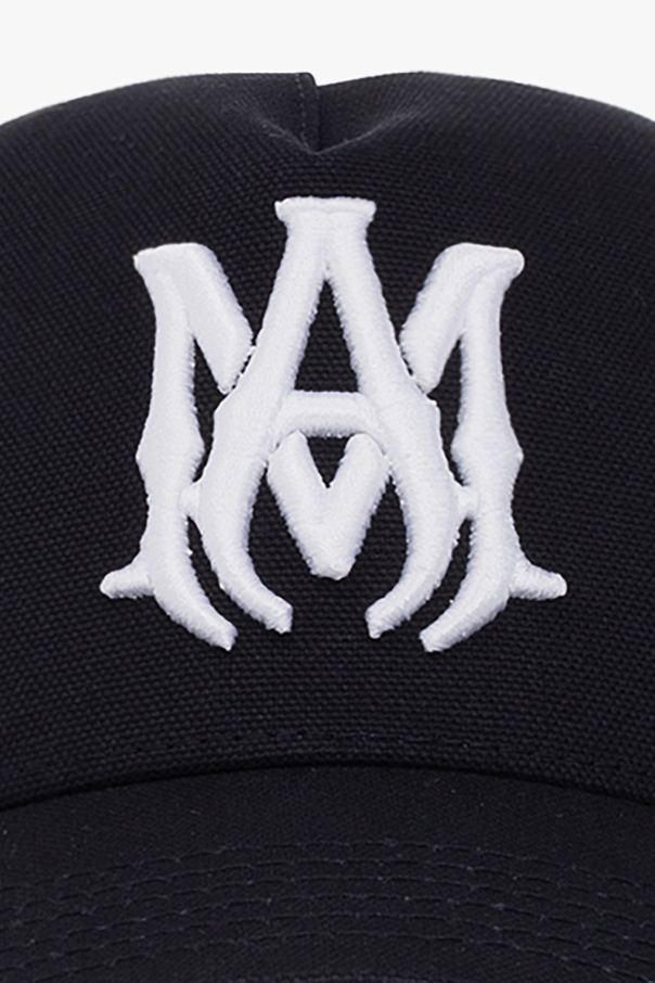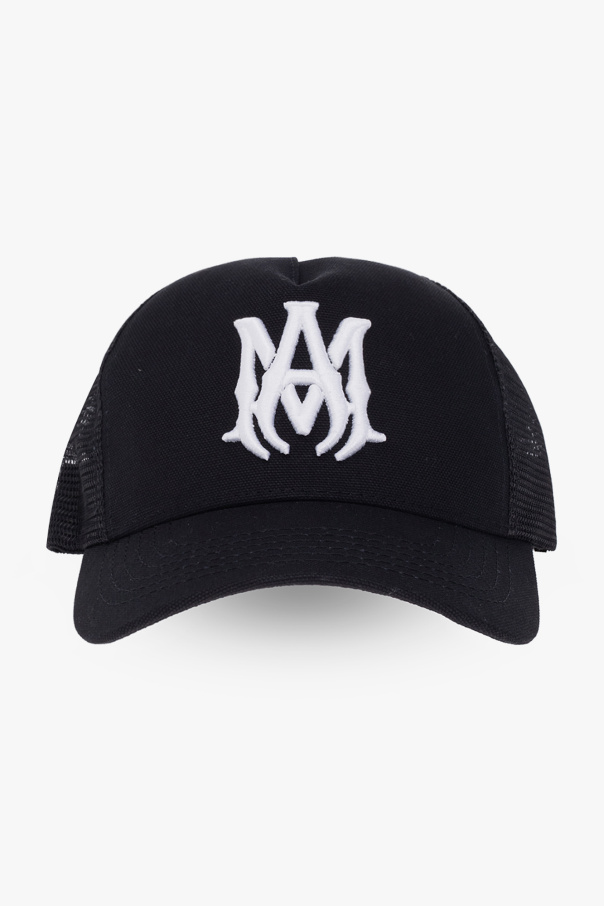 Amiri的黑色棒球帽,由棉和网眼制成,正面饰有白色“M.A.”徽标刺绣,背面饰有徽标贴片和按扣调节器。