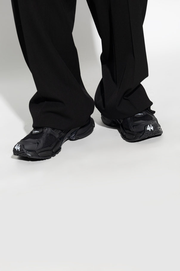 Balenciaga的黑色Runner运动鞋,系带设计。采用网眼布和橡胶制成。饰有白色刺绣和印花的标志,以及鞋码印花。后部设有拉片。毛边饰边与磨损效果。黑色橡胶外底。