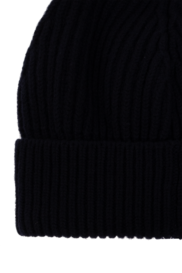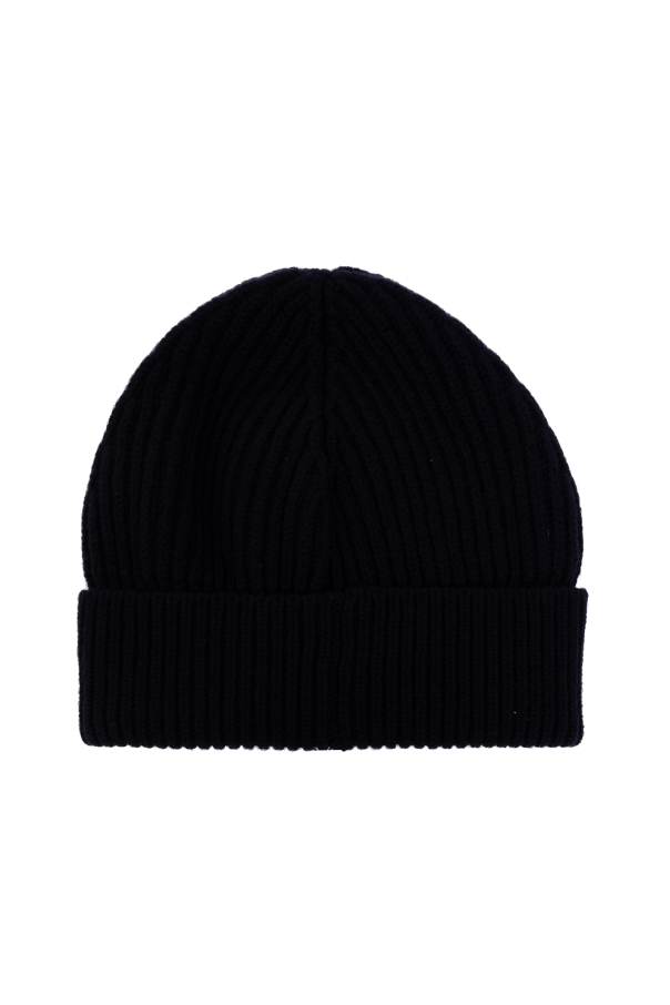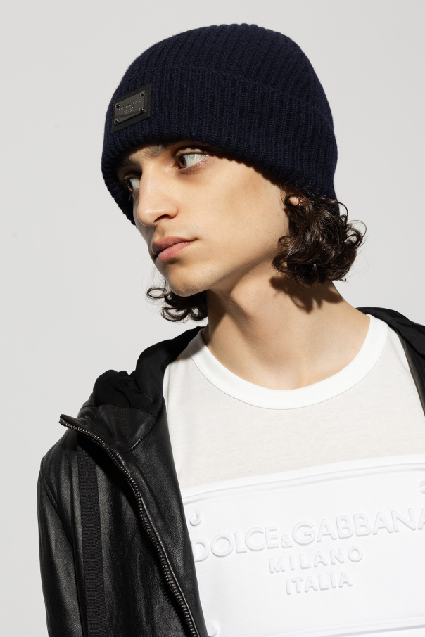 Dolce & Gabbana 海军蓝罗纹毛线帽,饰有徽标贴片。由羊毛和羊绒混纺面料制成。