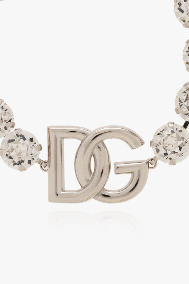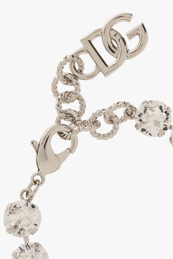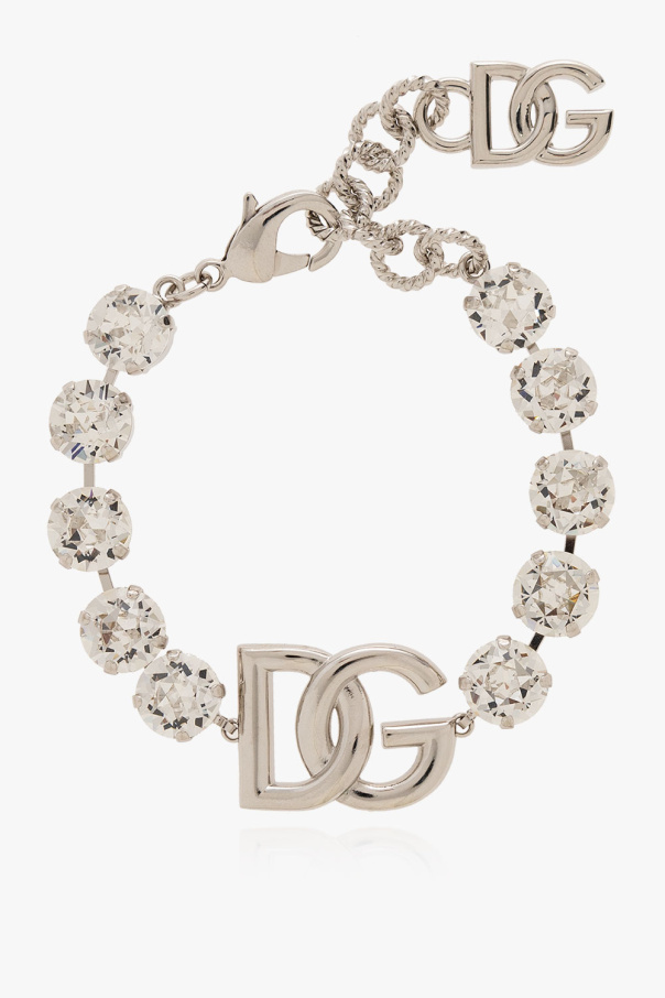 Silver-tone bracelet from Dolce & Gabbana. Made of brass, this item features an adjustable lobster clasp closure, crystals and monogram charm.