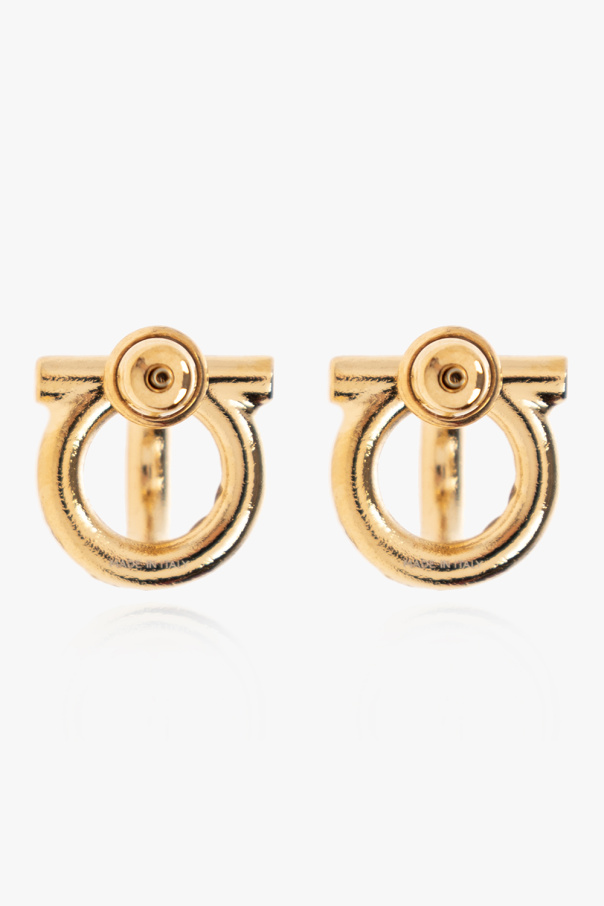 Gold-tone, logo-shaped push-back earrings from FERRAGAMO. Crafted from brass, this pair is embellished with crystals.