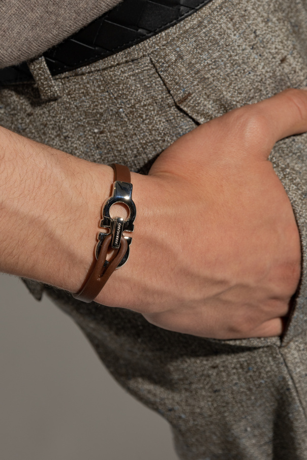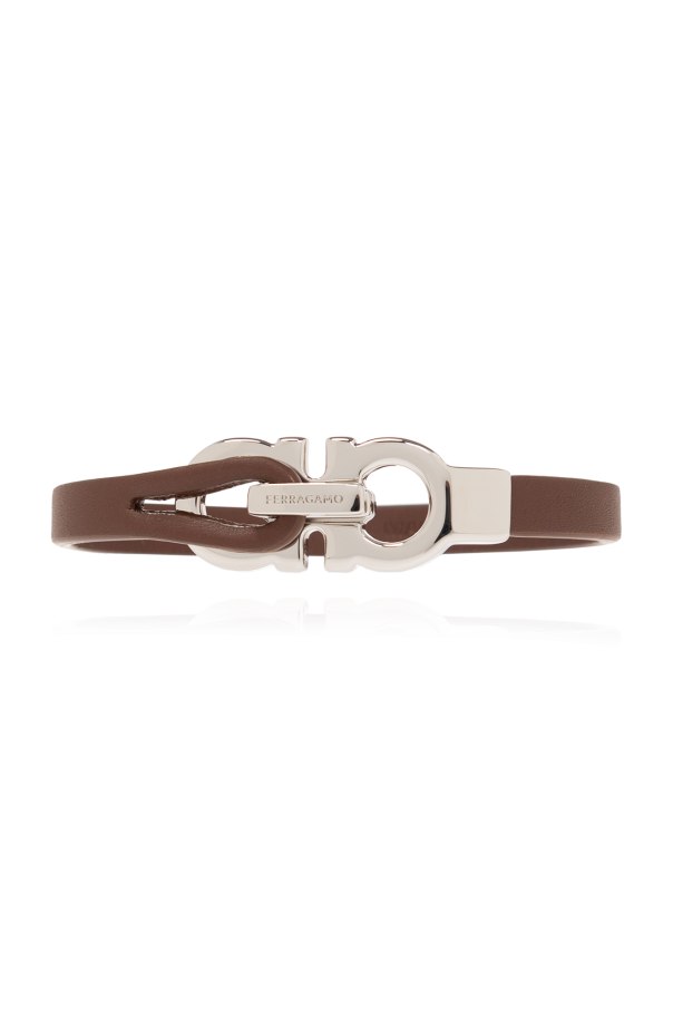Brown bracelet from FERRAGAMO. Made of calf leather, this item fastens with a logo-shaped hook in silver-tone.