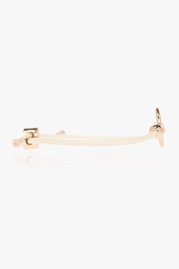 Tory Burch 金色和奶油色'Miller'可调节手链。由皮革和黄铜材质制成。饰有徽标坠饰。