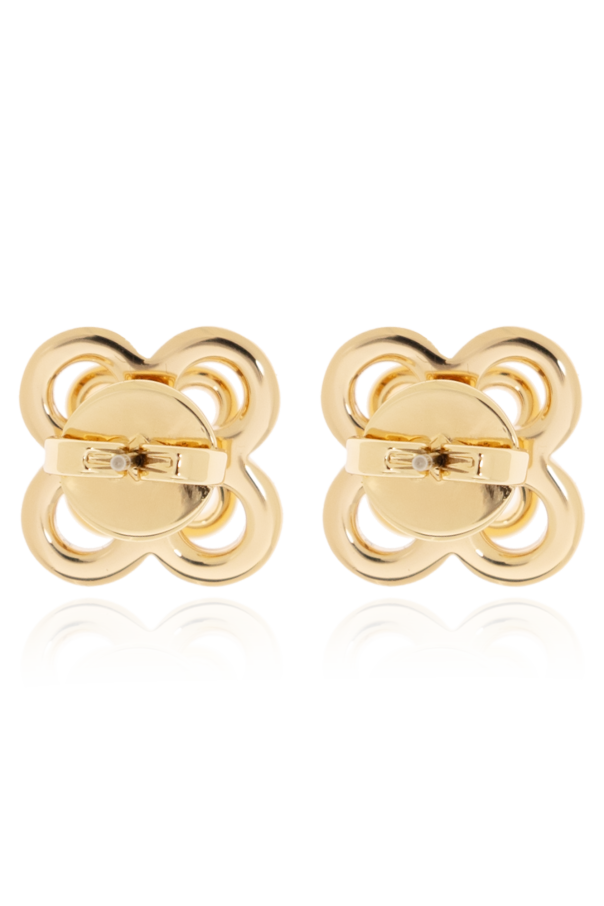 Gold-tone ‘Kira’ earrings from Tory Burch. Made from brass, they secure with push back closures and showcase a clover motif.