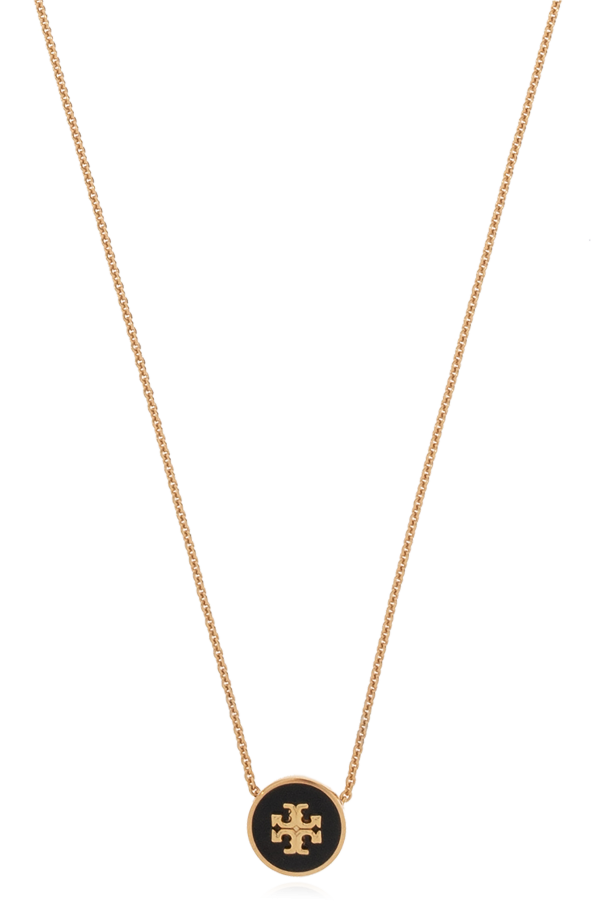 Gold-tone ‘Kira’ necklace from Tory Burch. Made of brass, this item features a lobster clasp fastening and an enamelled ‘Double T’ pendant.
