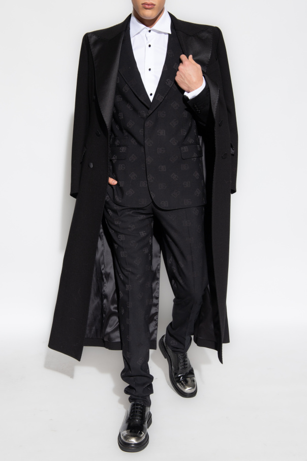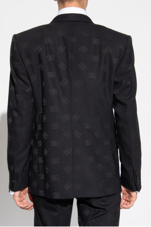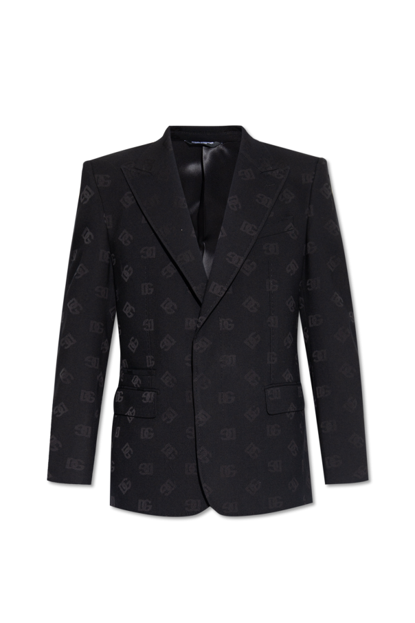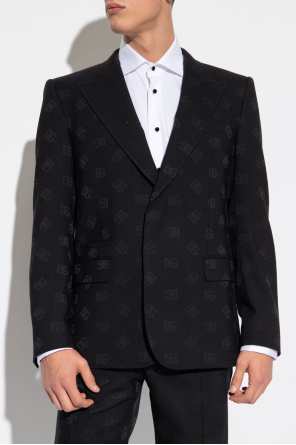 Dolce & Gabbana的黑色西装外套。采用羊毛混纺面料制成。纽扣开合。饰有标志图案。封闭式翻领。四个口袋:一个插袋和三个带盖袋。长袖。