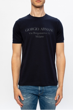 Giorgio Armani的黑色圆领T恤。棉质材料制成。正面附灰色logo图案。