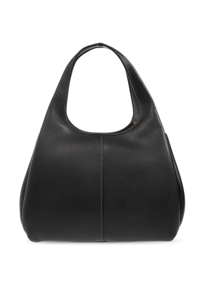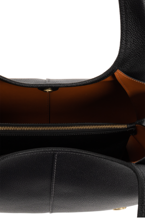 Coach的Lana黑色单肩包,采用皮革制成。磁扣开合。正面饰有标志贴花。两条半圆形肩带。棕色内衬。内部设有两个独立的隔层和一个拉链口袋。金色金属配件。