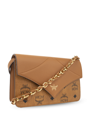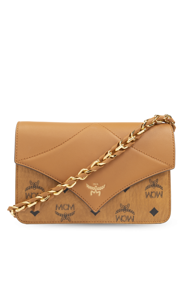 Brown ‘Diamond’ shoulder bag from MCM. Made of canvas faux leather, this design features a snap closure, logo print, back pocket, shoulder strap, gold-tone metal hardware and one internal compartment with two card slots and one zip pocket.