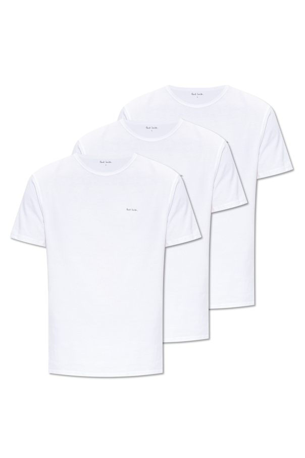 Paul Smith的三件白色T恤套装。采用有机棉制成。正面印有黑色标志。圆领,短袖。