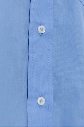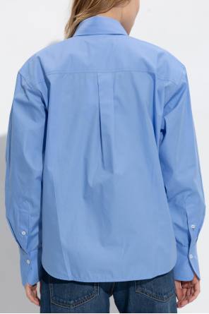 Victoria Beckham的宽松款蓝色衬衫。采用有机棉制成。纽扣开合。正面饰有红色刺绣标志和一个插袋。长袖,纽扣袖口。