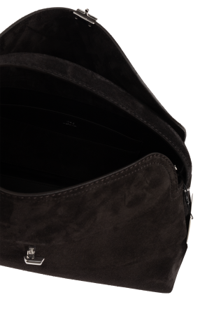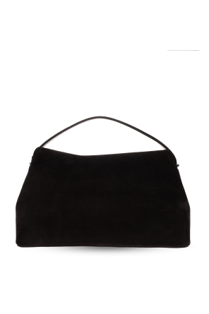 Black ‘T-Lock’ shoulder bag from Toteme. Made of suede, this model features a decorative T-shaped closure, short handle, detachable shoulder strap, silver-tone metal hardware and one internal compartment with two slip pockets.