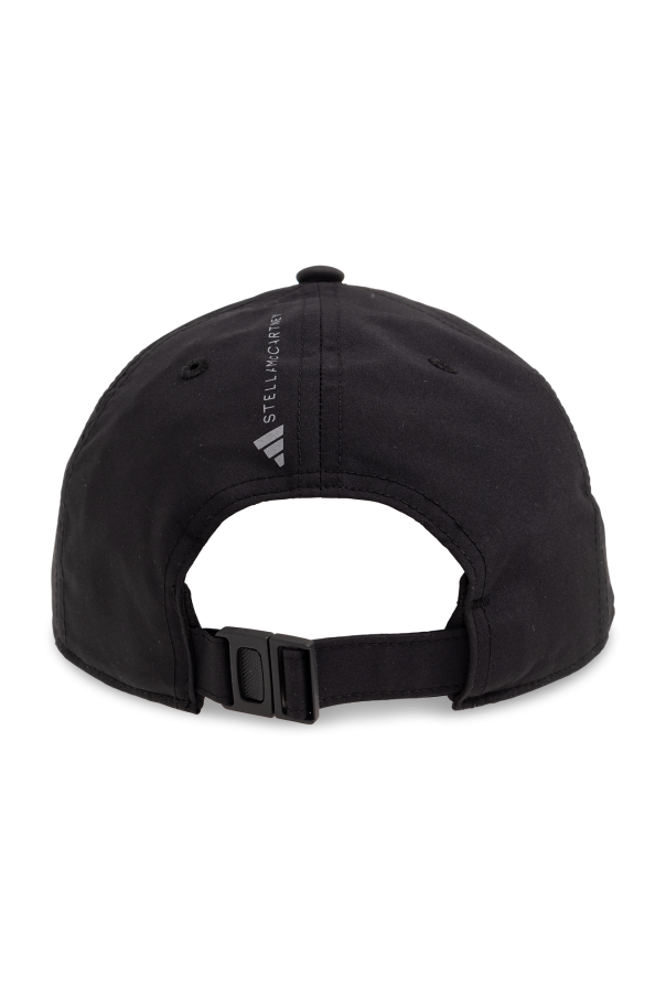 Black baseball cap from ADIDAS by Stella McCartney. Fastened with an adjustable snap-fastened strap at the back, this item is decorated with a rubber logo patch.