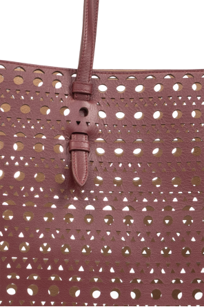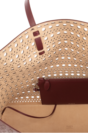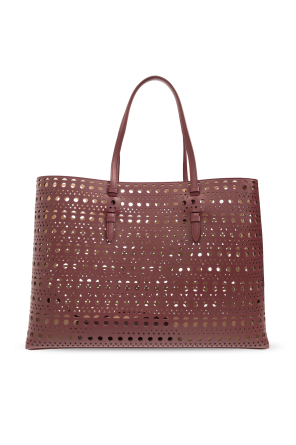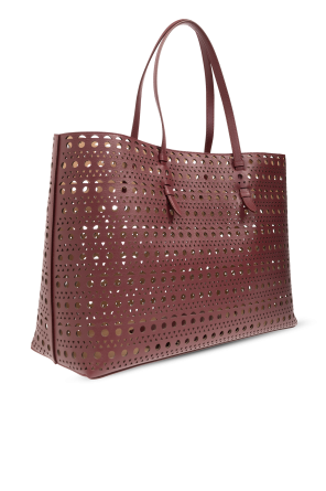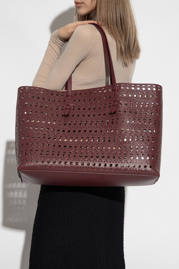 Alaia的酒红色Mina 44镂空托特包,采用小牛皮制成。饰有品牌特色的镂空图案。两个半圆形手柄。内部配有带拉链的可拆式挂袋主隔层,并饰有标志。银色金属饰件。