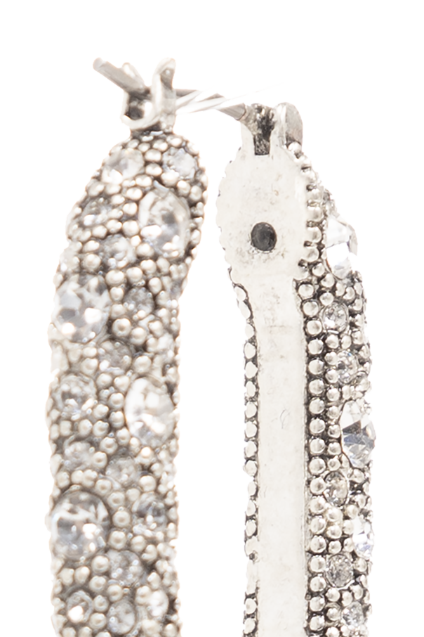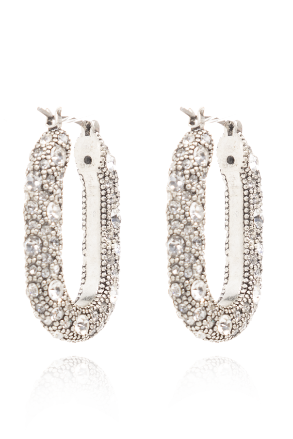 AllSaints银色黄铜耳环,饰有亮面玻璃饰片和锆石。按扣开合。