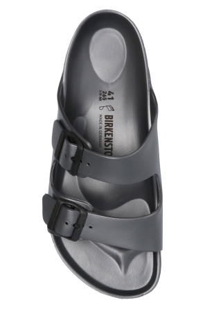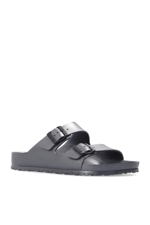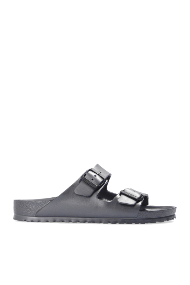 Birkenstock的银色调Arizona EVA拖鞋。EVA泡沫质。黑色调搭扣带含logo。银色调EVA鞋底。