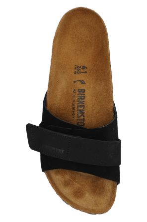 Black ‘Oita’ slides from Birkenstock. Made of suede and nubuck, this pair features velcro fastenings, an embossed logo, tapered anatomically-shaped cork-latex footbed as well as a brown and black sole constructed from natural cork and EVA foam.