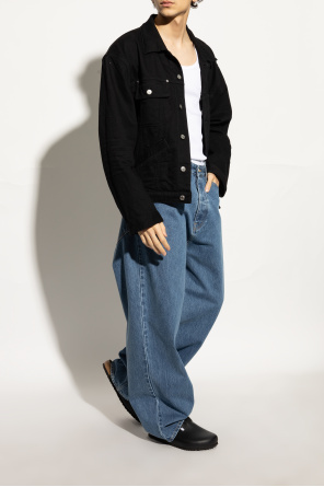 Birkenstock的黑色'Boston BS'拖鞋,采用标准宽度的皮革鞋面,配有带徽标压花搭扣的绑带,棕色天然软木和黑色 EVA 泡沫鞋底。
