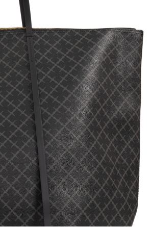 Black and grey ‘Leesa’ shopper bag from By Malene Birger. Embellished with the brand's logo and its trademark ‘Signature Flower’ pattern, this design features a zip fastening, two half-round handles, gold-tone metal hardware and one internal compartment with a slip pocket.
