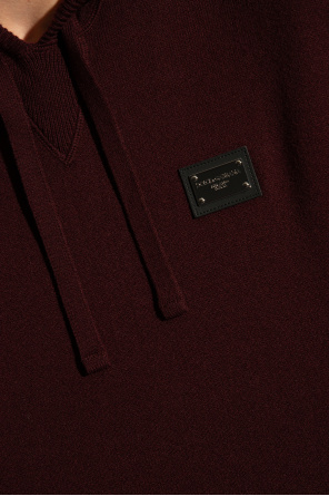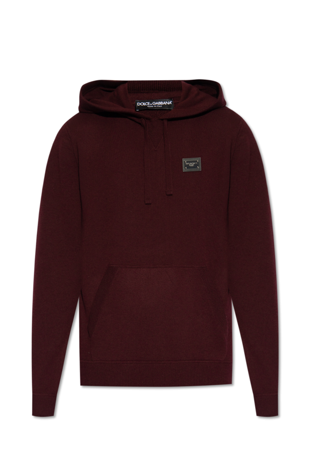 Dolce & Gabbana的酒红色毛衣。采用纯羊毛和少量羊绒混纺面料制成。抽绳兜帽。饰有标志贴花。正面设有插袋。长袖和下摆松紧饰边。