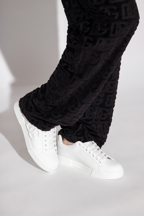 Black shopper bag from Dolce & Gabbana. Crafted from leather, this design showcases the brand's logo on the front, two half-round straps and a monogrammed textile-clad interior with one zip pocket and one slip pocket.