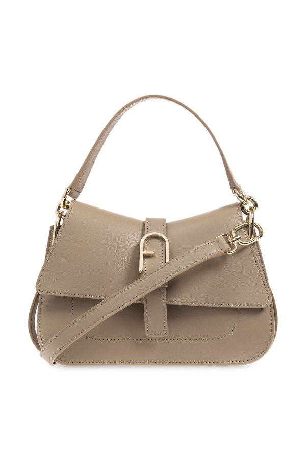 Light brown ‘Flow Mini’ shoulder bag from Furla. Made of leather, this item features a magnetic closure, logo detail half-round handle, detachable and adjustable shoulder strap, gold-tone metal hardware and one internal compartment with one slip pocket.