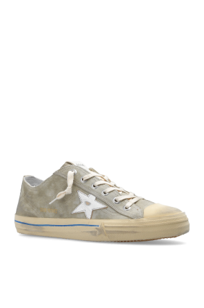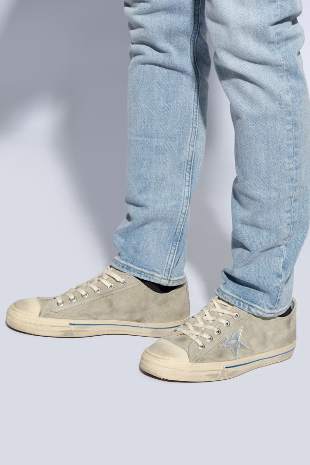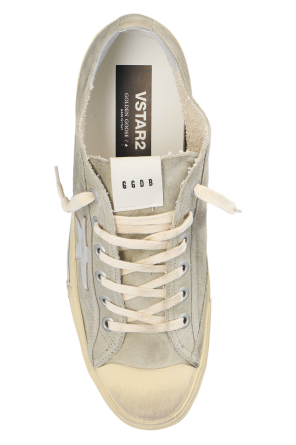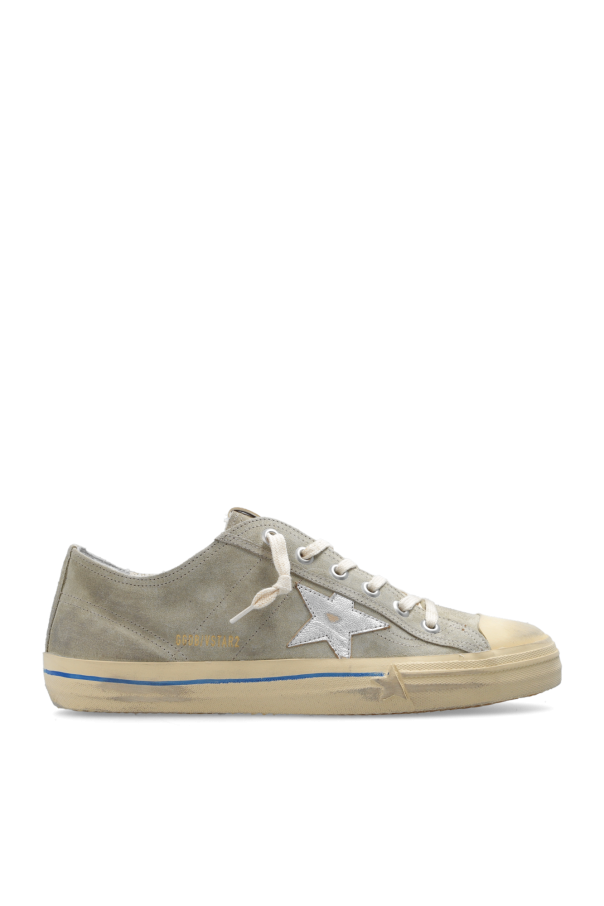 Golden Goose的灰色V-Star 2运动鞋,系带设计。采用皮革制成。饰有品牌标志性的星星图案和压花logo。复古效果。米色橡胶外底。