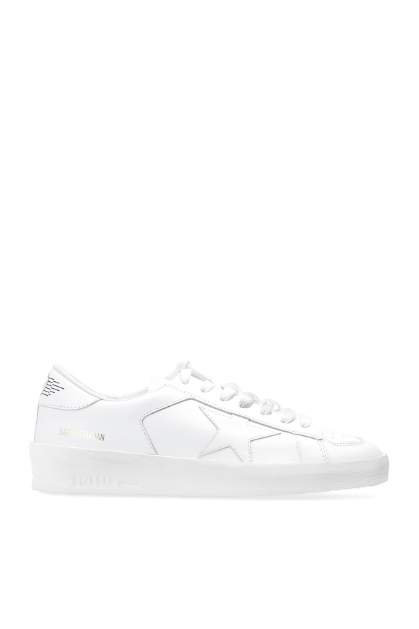Golden Goose的白色真皮Stardan系带运动鞋,饰以前置穿孔式细节。鞋舌搭配logo贴花。奶油色橡胶鞋底。