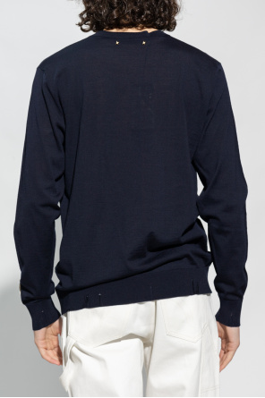 Golden Goose的海军蓝色圆领羊毛质毛衣。附标志贴片。罗纹衣领、下摆和袖口。