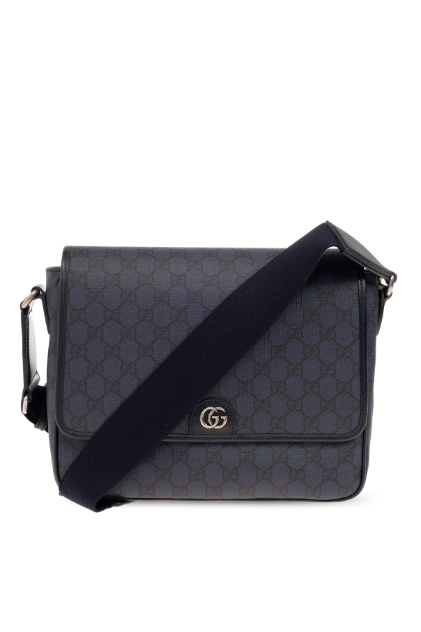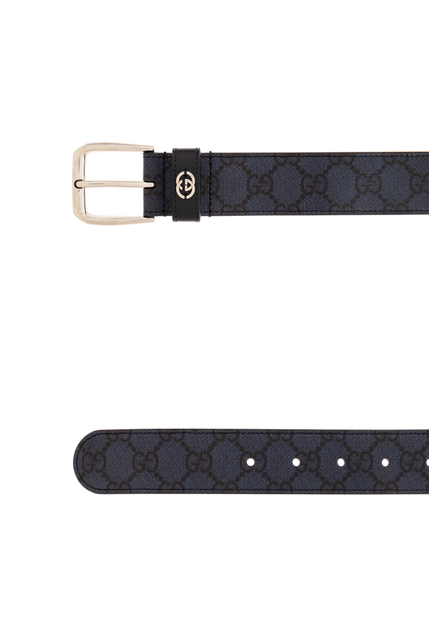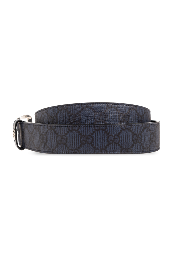 Navy blue belt from Gucci. Made of the brand's signature ‘GG Supreme’ canvas and trimmed with calf leather, this item features a silver-tone logo buckle.
