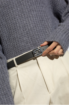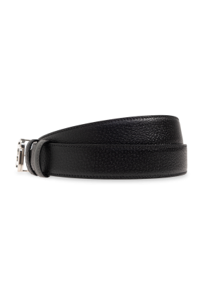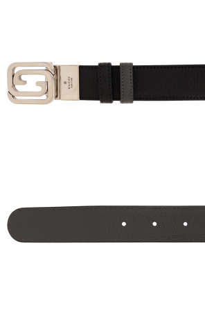 Reversible belt in black and dark grey from Gucci. Made of grained calf leather, this item features a silver-tone logo buckle.
