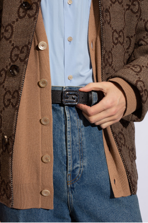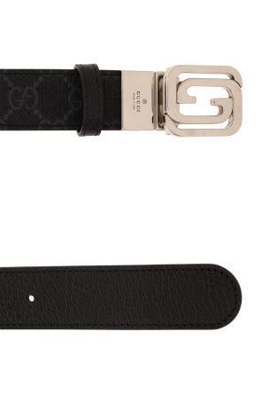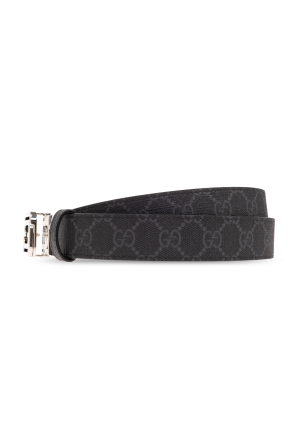 Reversible belt in black from Gucci. One side is made of grained calf leather The other side is made of the brand's signature ‘GG Supreme’ canvas. The design is complete with a silver-tone logo buckle.