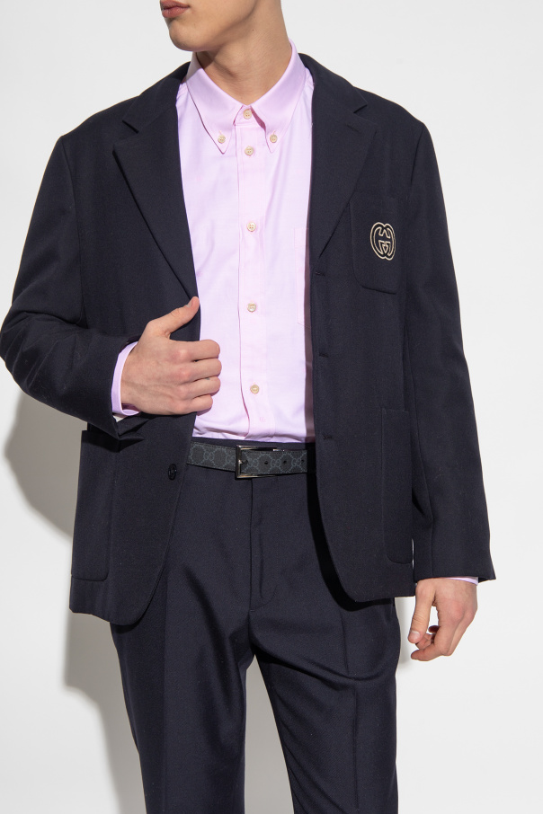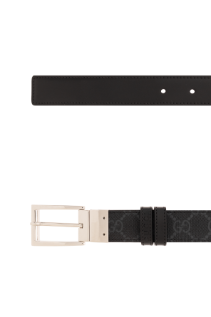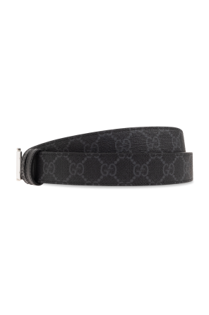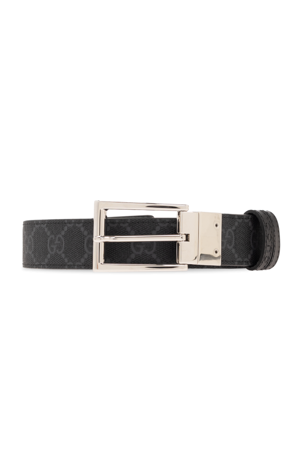 Reversible belt from Gucci. One side is made of the brand's signature ‘GG Supreme’ canvas in black and dark grey. The other side is made of black calf leather. The design is complete with a silver-tone buckle with an engraved logo.