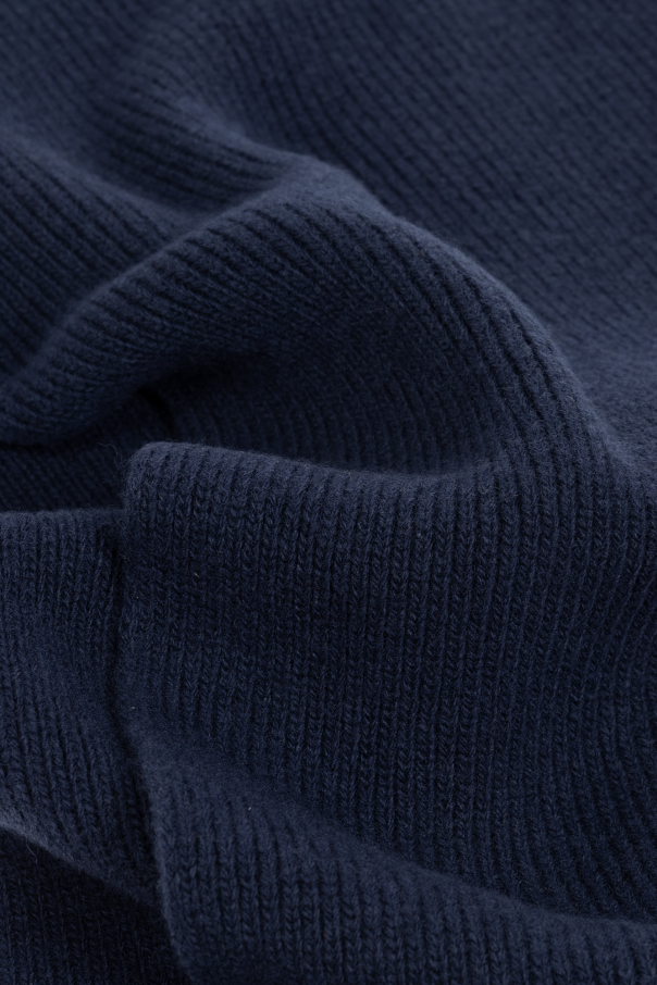 Gucci的深蓝色条纹围巾,由羊毛制成。饰有标志贴花。