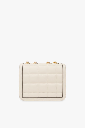 Cream ‘Deco Mini’ quilted shoulder bag from Gucci. Made of leather, this design secures with an ‘Interlocking G’ fastener and features a chain shoulder strap, gold-tone and silver-tone metal hardware and one internal compartment.