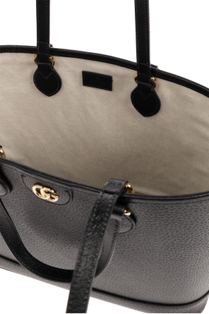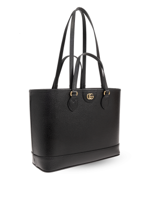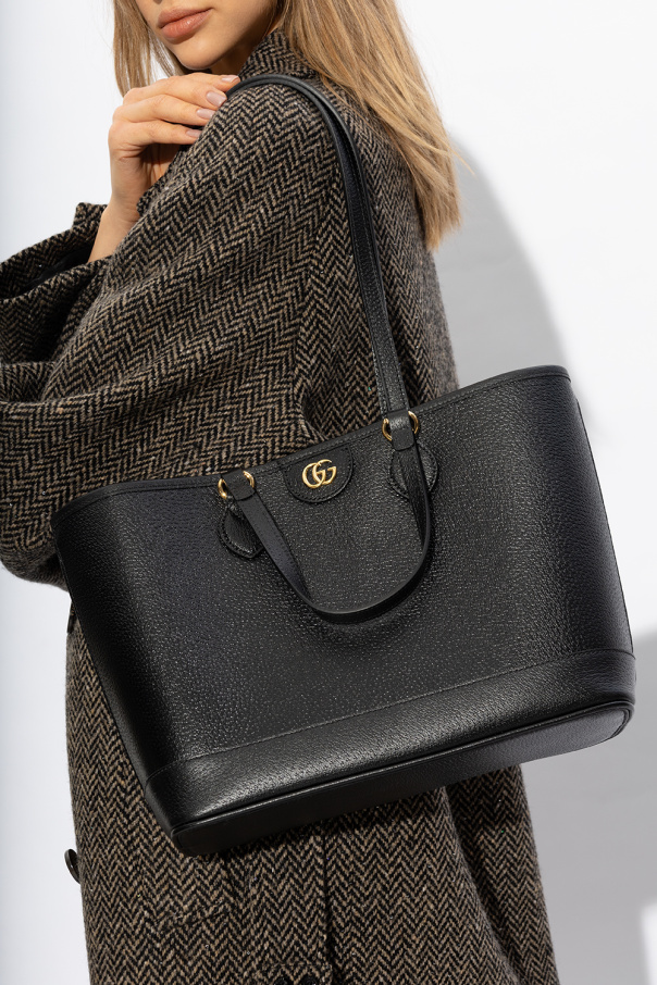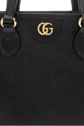 Black ‘Ophidia Mini’ shopper bag from Gucci. Made of calf leather, this design showcases Double G hardware on the front, four handles, gold-tone metal elements and one internal compartment.