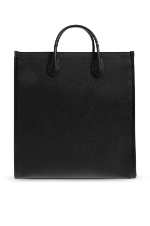 Gucci的黑色托特包,中号,采用皮革制成。龙虾扣开合。正面饰有灰黑色GG Supreme帆布凸起标志。两个半圆形手柄。可拆卸可调式肩带。内部设有一个主隔层和一个拉链口袋。银色金属配件。