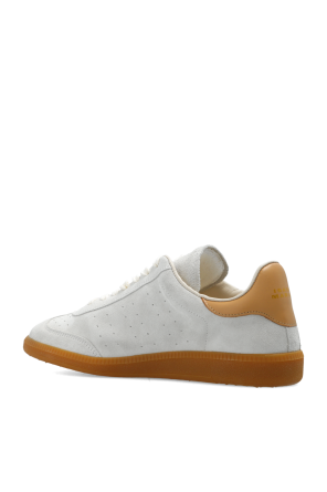 Grey and beige ‘Bryce’ sneakers from Isabel Marant. Made of suede and leather, this pair sits on a beige rubber sole and features a logo on the side and a heel counter.