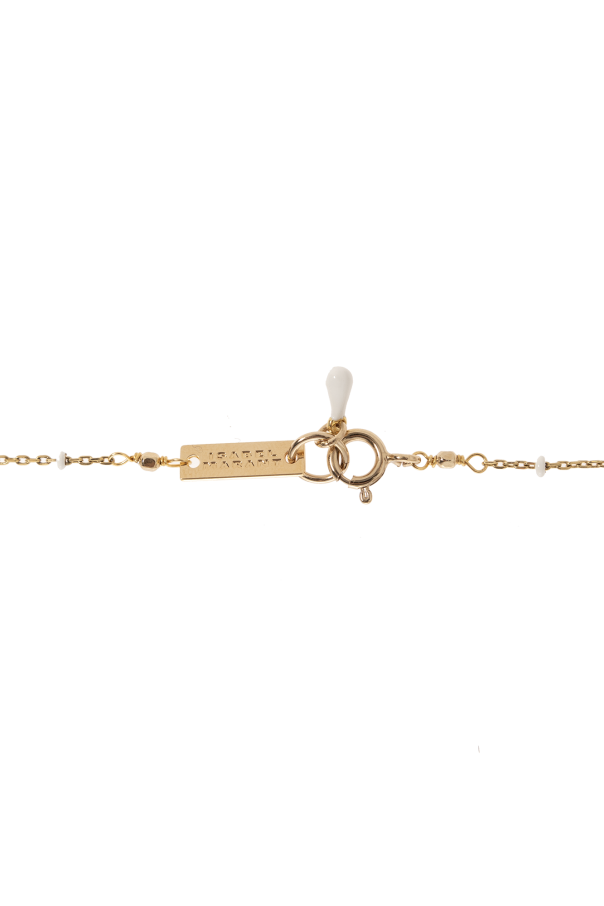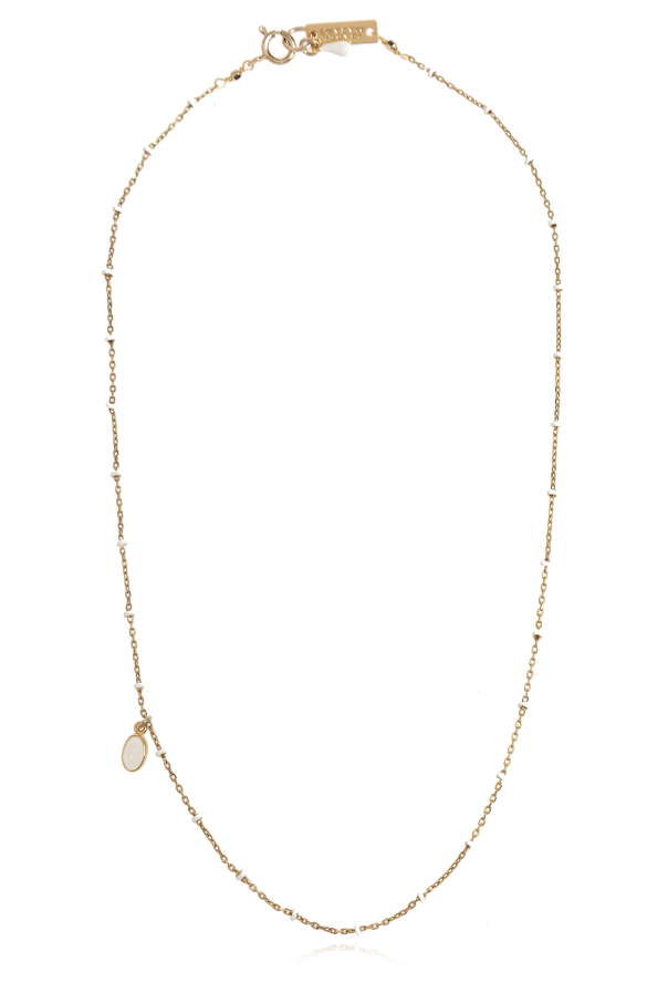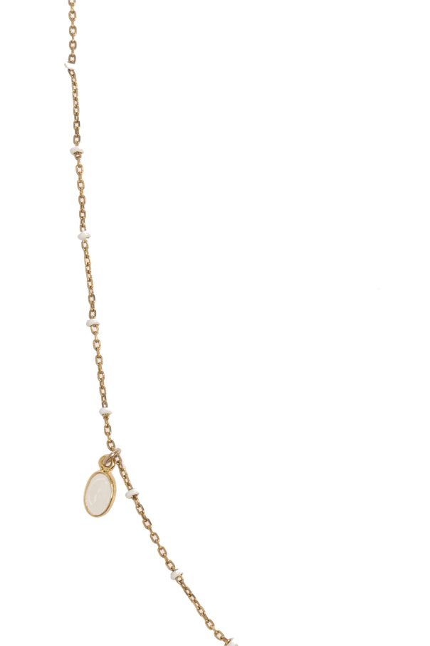 Isabel Marant的黄色黄铜项链。配有带刻有标志的龙虾扣。饰有吊坠和白色珠子。