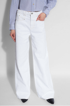 Isabel Marant的白色Lemony牛仔裤。拉链和纽扣开合。后面有标志贴花。四个插袋。直筒宽松裤腿。