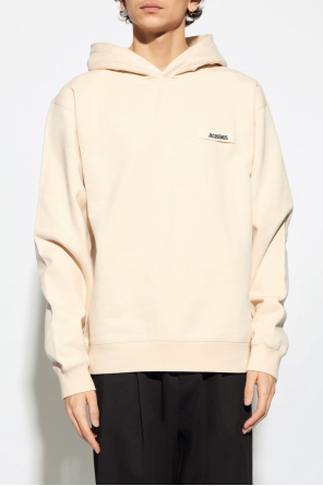 Jacquemus的浅米色棉质连帽衫。正面饰有标志贴花。长袖和下摆设有松紧饰边。